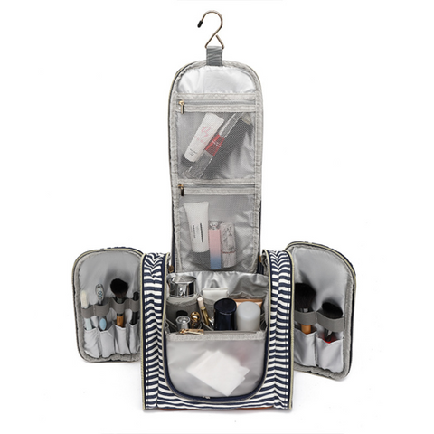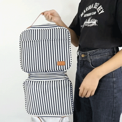 The Waterproof Fashionable Striped Toiletry bag has four compartments almost with the same size and shape, so that you can keep your toiletries and makeup stuffs separately when you are in need.